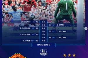 體育資訊9月14日訊 本輪英超將迎來焦點(diǎn)戰(zhàn)曼市德比,德轉(zhuǎn)也盤點(diǎn)了兩支球隊(duì)在近些年的一些經(jīng)典比賽,具體如下: