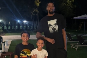 照片中杜蘭特和奧古斯汀的兩個兒子合影留念。KD和奧古斯汀是得州大學的前隊友,而后者在休斯敦有房產(chǎn),這張照片就可能是拍于奧古斯汀休斯敦的家中。
