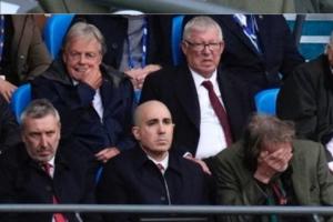 第一排左到右:曼聯(lián)足球總監(jiān)威爾考克斯,曼聯(lián)CEO貝拉達(dá),拉特克利夫