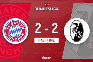 半場(chǎng)-拜仁暫2-2弗賴(lài)堡 拜仁兩次角球中丟球 卡爾、奧利塞互相傳射