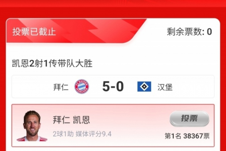 第三輪評選結(jié)果結(jié)出爐,凱恩2射1傳,幫助拜仁5-0大勝漢堡,獲得吧友近4萬票的支持,擊敗格里馬爾多當選 【體育資訊X小紅書德甲第3輪最佳球員】!