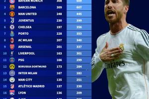 體育資訊09月16日訊 明晨新賽季歐冠打響,德轉(zhuǎn)列出歐冠(自1992/93賽季開始)總積分排行,皇馬661分第一,拜仁、巴薩二三,曼聯(lián)第四。