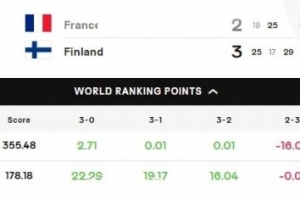 體育資訊9月16日訊 2025年男排世錦賽第一階段小組賽C組第二輪,芬蘭男排苦戰(zhàn)五局3-2(25-19 17-25 29-27 21-25 15-9)爆冷戰(zhàn)勝兩屆奧運冠軍法國男排。