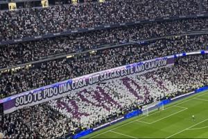 據(jù)記者Mario Cortegana報道,皇馬球迷拉出了橫幅,上面寫著:只有一個要求,今年成為冠軍。