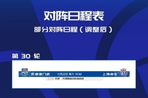 體育資訊9月17日訊 中超官方消息,中超第30輪天津津門虎vs上海申花比賽場地調(diào)整為天津奧體中心體育場。