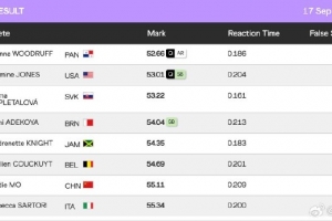 體育資訊9月17日訊 2025年東京田徑世錦賽女子400米欄半決賽中,第1組的莫家蝶跑出55秒11的成績,排名小組第七 ???,無緣世錦賽女子400米欄決賽。