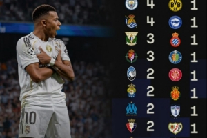 Sofascore也盤點(diǎn)了姆巴佩皇馬生涯50球的分布,其中對(duì)陣巴薩打進(jìn)5球最多,對(duì)陣曼城、塞爾塔、皇家社會(huì)均是打進(jìn)4球,對(duì)陣巴拉多利德、萊加內(nèi)斯打進(jìn)3球,此外對(duì)陣亞特蘭大等球隊(duì)打進(jìn)2球。