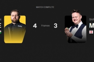 體育資訊9月19日訊 2025斯諾克英格蘭公開賽16進8輪次,杰克遜-佩奇打出三桿50+(58、51、53),肖恩-墨菲打出一桿破百(102)和兩桿50+(69、93),雙方鏖戰(zhàn)至決勝局,最終佩奇以4-3的比分戰(zhàn)勝墨菲晉級八強。