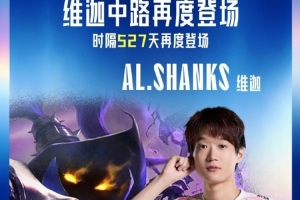 體育資訊9月20日訊 2025年9月20日,Shanks選手選出維迦中路,此為中路維迦時隔527天再度登場,上一次在中路位置被選用,是在2024LPL春季賽BLG vs TES時的BLG.Knight 選手。