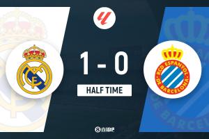 體育資訊9月20日訊 北京時間9月20日22時15分,西甲第5輪,皇馬坐鎮(zhèn)伯納烏球場迎戰(zhàn)西班牙人。上半場,米利唐世界波首開紀(jì)錄。半場戰(zhàn)罷,皇馬暫1-0領(lǐng)先西班牙人。