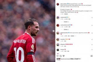 麥卡利斯特賽后在個人社媒曬出本場照片,配文寫道:“默西塞德德比勝利屬于我們,球隊拿出了很棒的表現,這是必須要取勝,必須全力拼搏的比賽,又一場主場勝利!”