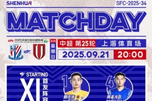 2025華潤飲料中超聯(lián)賽第25輪 上海申花 vs 成都蓉城 首發(fā)名單 ???