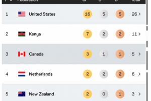 2.肯尼亞 7金2銀2銅 共11枚獎(jiǎng)牌