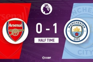 半場結(jié)束,阿森納暫0-1曼城。