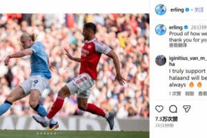在社交媒體上,哈蘭德寫道:為今天的拼搏感到自豪,感謝你們一如既往的支持。