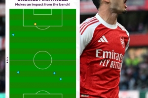 體育資訊9月22日訊 英超官方發(fā)布數(shù)據(jù),馬丁內(nèi)利替補登場后僅觸球5次,便為阿森納1-1逼平曼城。