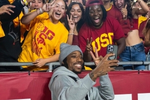 體育資訊9月22日訊 南加大籃球隊社媒更新動態(tài),曬出了校友、NBA球員德羅贊回到母校觀看校橄欖球隊的比賽照片,德羅贊在現場也是熱情的和學弟、學妹們互動。