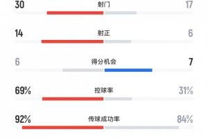 曼城3-4新月全場(chǎng)數(shù)據(jù):