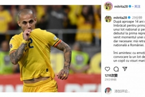 米特里策在社媒寫道:“在首次穿上國家隊球衣近14年、完成一線隊首秀逾7年之后,我迎來了一個艱難卻必要的決定:從羅馬尼亞國家隊退役。