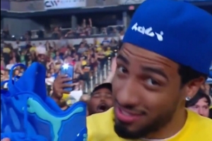 前NBA球員蒂格和現(xiàn)步行者球星哈利伯頓也來到了現(xiàn)場觀戰(zhàn),哈利伯頓還身穿著WWE巨星約翰-塞納的周邊T恤。
