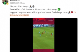賽后,萊昂納多更新社媒慶祝,他同時(shí)配文:榮耀歸于上帝,全隊(duì)付出了巨大努力,客場(chǎng)拿到重要的3分,很高興用進(jìn)球和助攻幫助球隊(duì),上帝總是知道。
