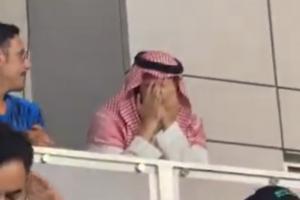 賽后,看臺(tái)上利雅得新月主席法赫德-本-納費(fèi)爾掩面拭淚,喜極而泣。