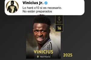 西班牙媒體《世界體育報》曬出維尼修斯在去年金球獎頒獎典禮后的言論:如果有必要我會付出10倍努力,他們還沒準備好。