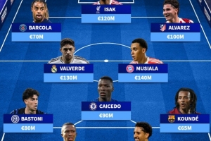 前鋒:巴爾科拉(巴黎 7000萬歐)、伊薩克(紐卡、利物浦 1.2億歐)、阿爾瓦雷斯(馬競 1億歐)