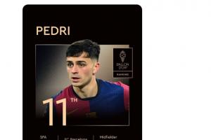 體育資訊09月23日訊 2025年金球獎獎項公布,巴薩中場佩德里排名第11,沒有進(jìn)入前十。
