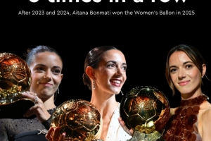 體育資訊9月23日訊 在巴黎進行的金球獎頒獎典禮上,巴薩女足球員邦馬蒂連續(xù)第三次奪得金球獎,《世體》稱贊了球員獲得的巨大成就。