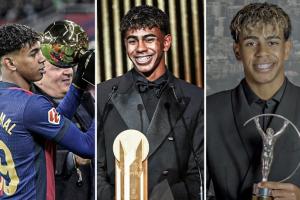 體育資訊09月23日訊 2025金球獎(jiǎng)典禮今日凌晨進(jìn)行,亞馬爾金球獎(jiǎng)排在第二,同時(shí)還拿下了科帕獎(jiǎng)蟬聯(lián)該獎(jiǎng)項(xiàng)。