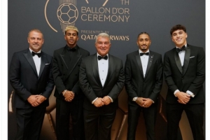 體育資訊9月23日訊 巴薩官方更新社媒動(dòng)態(tài),曬出拉波爾塔與弗里克、亞馬爾等人出席金球獎(jiǎng)?lì)C獎(jiǎng)典禮的合照。