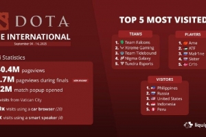 體育資訊9月24日訊 液體WIKI分享了他們?cè)赥I14期間的流量;一共是99.5TB,頁面一共被瀏覽了4040萬次,總決賽期間頁面被瀏覽了670萬次;