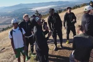 體育資訊9月24日訊 外媒曬出一張俄勒岡大學(xué)男籃隊員爬山照,中國球員林葳在列,穿上了統(tǒng)一的服裝,上腳科比4耐高配色(耐克總部在俄勒岡州,耐克是俄勒岡大學(xué)的長期贊助商)。