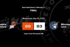 體育資訊9月24日訊 今天結(jié)束的一場(chǎng)WNBA半決賽,菲尼克斯水星89比83擊敗明尼蘇達(dá)山貓,將大比分扳為1比1。