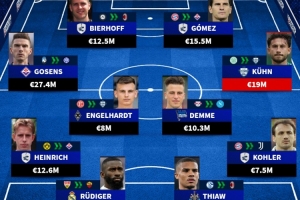 后衛(wèi):海因里希(多特→佛羅倫薩,1260萬(wàn)歐)、呂迪格(斯圖加特→羅馬,1300萬(wàn)歐)、佳夫(沙爾克→米蘭,1280萬(wàn)歐)、科勒爾(拜仁→尤文,750萬(wàn)歐)