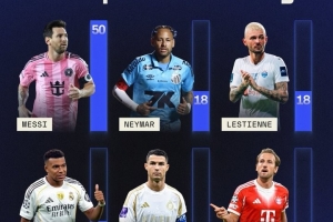 體育資訊9月25日訊 SofaScore統(tǒng)計了他們數(shù)據(jù)庫中獲得10分評價的次數(shù)排名,梅西50次遙遙領先。