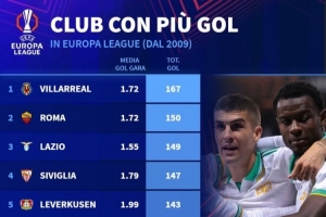 體育資訊9月25日訊 日前,德國轉會市場網站統(tǒng)計了2009年以來歐聯(lián)杯進球數(shù)排行,比利亞雷亞爾以167球居首,塞維利亞第四、曼聯(lián)第六。