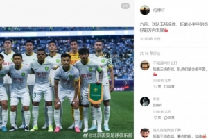北京國(guó)安球員馮博軒更新了社媒,他寫(xiě)道:六月,球隊(duì)五場(chǎng)全勝,折磨小半年的傷愈,一切都在往好的方向發(fā)展。