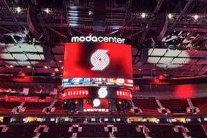 開拓者主場摩達(dá)中心近日公布了全新的中場大屏幕以及球場周邊曲面屏的升級。