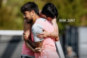 體育資訊9月26日訊 效力洛杉磯FC的華裔球員伍小海更新社媒,曬出自己在訓(xùn)練中和隊友孫興慜的擁抱照。