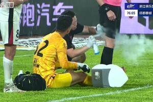 比賽第76分鐘時,劉殿座受傷倒地,隊醫(yī)進(jìn)場對他進(jìn)行治療,隨后主裁讓蓉城隊醫(yī)也給自己的大腿后側(cè)噴上噴霧。
