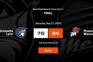體育資訊9月27日訊 WNBA季后賽半決賽G3,水星84比76擊敗山貓,大比分2比1領(lǐng)先。
