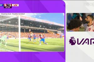 體育資訊09月28日訊 英超第6輪,水晶宮vs利物浦。比賽第87分鐘,基耶薩替補破門為利物浦一度1-1扳平比分,VAR檢查了此球過程中薩拉赫的疑似手球,并確認進球有效。