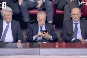 皇馬2-1領(lǐng)先馬競(jìng)時(shí),弗洛倫蒂諾看臺(tái)上開懷大笑↓