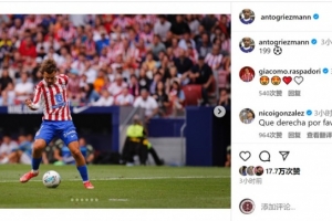 格列茲曼為馬競(jìng)攻入199球,在西甲比賽中打進(jìn)199球,僅差1球達(dá)成200球里程碑,賽后他在社交媒體上曬出比賽照片,配文:“199??”