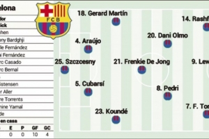 體育資訊9月28日訊 《阿斯報(bào)》發(fā)文,預(yù)測(cè)了巴薩的首發(fā)陣容。