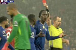 上輪英超,十人切爾西1-2不敵十人曼聯(lián),比賽開(kāi)場(chǎng)5分鐘,切爾西門將桑切斯就因出擊放倒姆伯莫被紅牌罰下,當(dāng)時(shí)查洛巴對(duì)桑切斯“死亡凝視”。