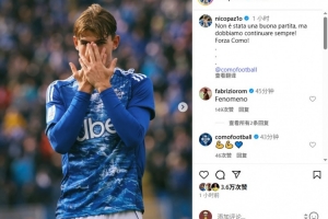 體育資訊9月28日訊 科莫中場(chǎng)尼科-帕斯在社交媒體發(fā)文,鼓勵(lì)球隊(duì)。