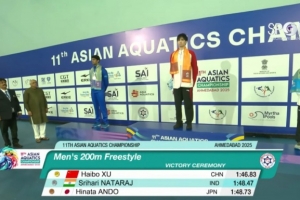體育資訊9月28日訊 2025年亞洲游泳錦標(biāo)賽男子200米自由泳決賽,徐海博1分46秒83奪得金牌。